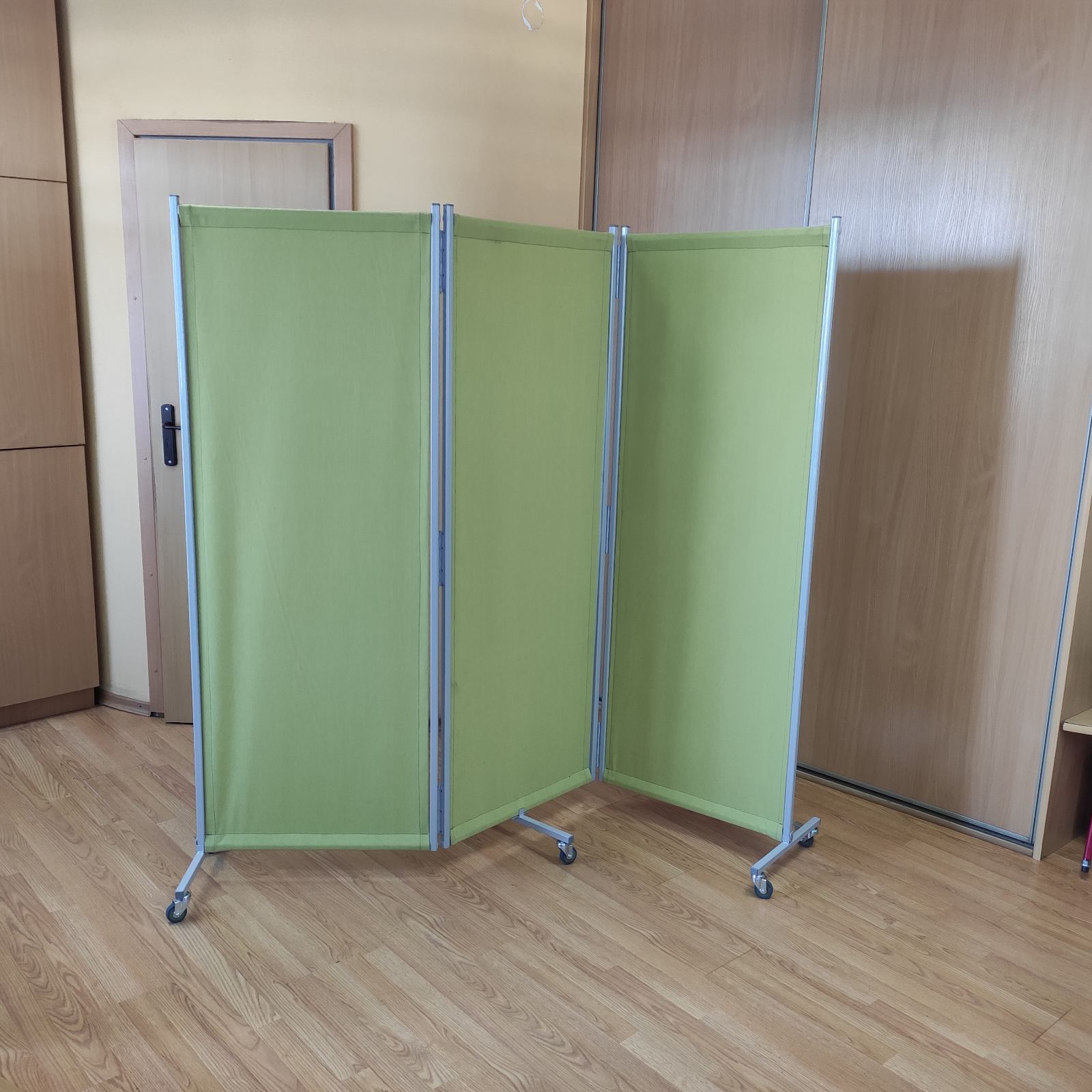 Использование колесных опор добавляет мобильности и облегчает перемещение ширмы между участками проведения работ.